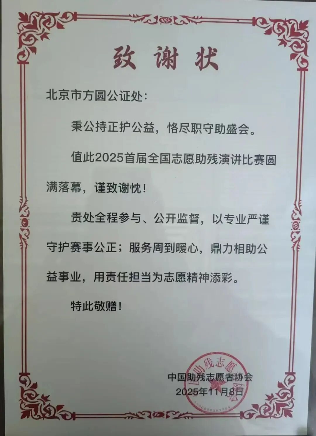 他们的专业与严谨,赢得了主办方的高度认可,并收到了暖心的致谢状与志愿服务嘉许证书。