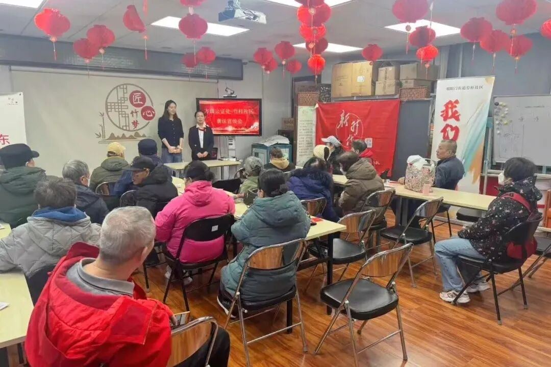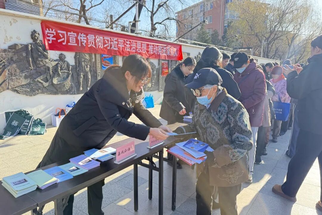 同样的暖意也在东城区景山街道弥漫。长安公证处的公证员王佳利、董少华与法院、街道、律所等多方力量组成“法律志愿服务团”,为居民提供“一站式”咨询服务,从婚姻家庭到遗产继承,他们耐心解答疑惑,发放宣传品,并与居民一同观看宪法主题宣传片,用群众喜闻乐见的形式,让法治观念深入人心。