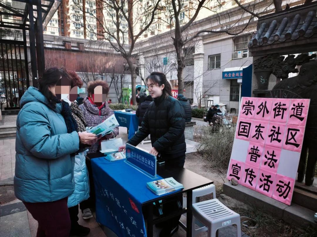 妇女节来临之际,北京市信德公证处参加东城区妇联联合景山街道、东城区中小企业服务中心举办的“法治东城暖万家 巾帼维权在身边”普法宣传志愿服务活动。面对群众提出的复杂家事问题,公证人员耐心释法,结合具体案例讲解公证在预防纠纷、保障妇女权益中的独特作用。