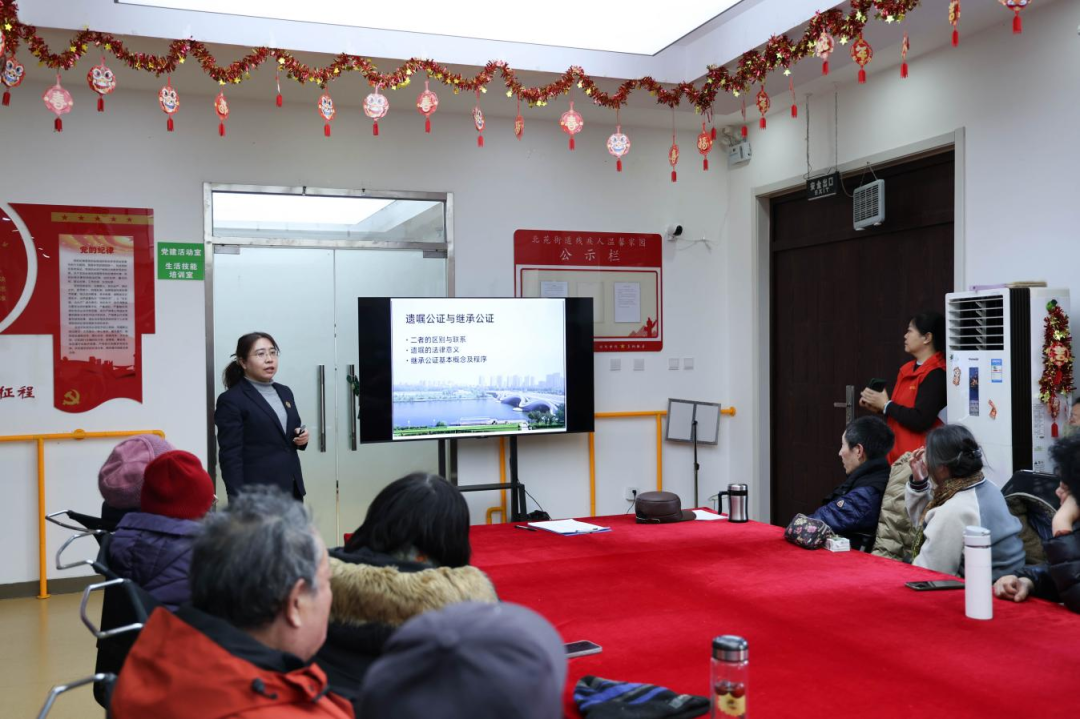 图为公证员史彦维为社区老年人开展公益宣讲