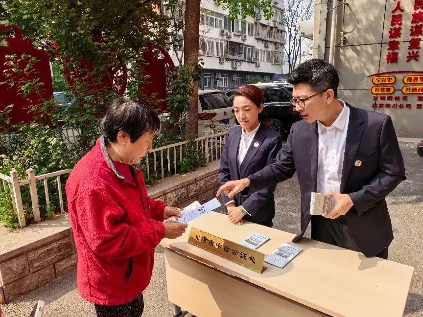 4月15日,北京市中信公证处在接待大厅开展公益普法宣传,并组织公证人员走进西城区展览路街道万明园社区,以“普法进社区 国安入民心”为主题开展公益宣传活动。