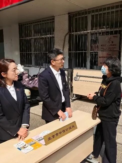 在工体社区和隆福广场,公证员们化身“普法使者”,以通俗易懂的语言向群众宣讲总体国家安全观的核心要义,结合国家安全法、法治宣传教育法、公证法等法律法规,讲解新时代国家安全事业取得的历史性成就。公证员还聚焦遗嘱公证、财产约定公证、证据保全公证等业务,阐述公证在预防纠纷、保障权益、防范化解风险中的重要作用,现场解答网络诈骗防范、劳动合同纠纷等问题,累计发放宣传材料200余份。