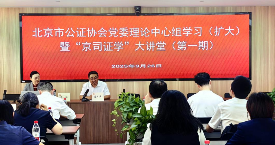 9月26日,市公证协会党委举办了北京市公证协会党委理论学习中心组学习(扩大)暨“京司证学”大讲堂(第一期)活动,此次培训以线上线下相结合形式进行,全市公证机构党支部书记、专职副书记、党小组组长、党务工作者以及党员公证员骨干60余人参与了本次培训。培训会由市公证协会党委书记党卫星主持。